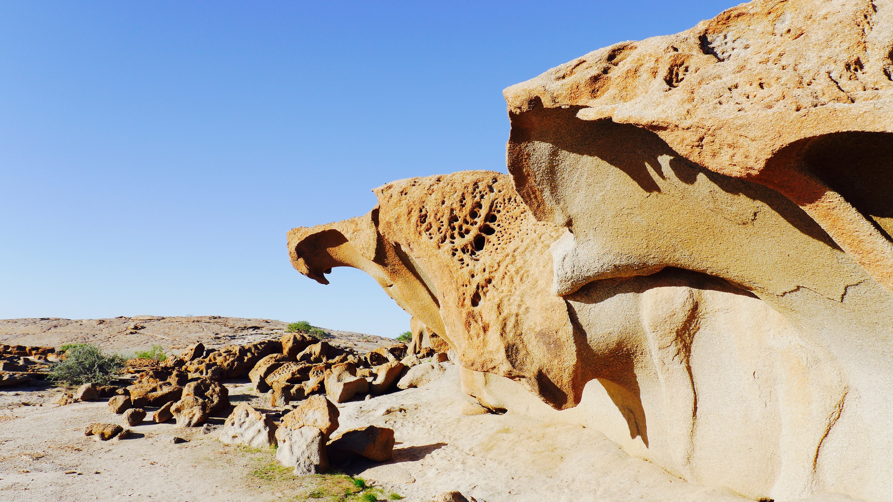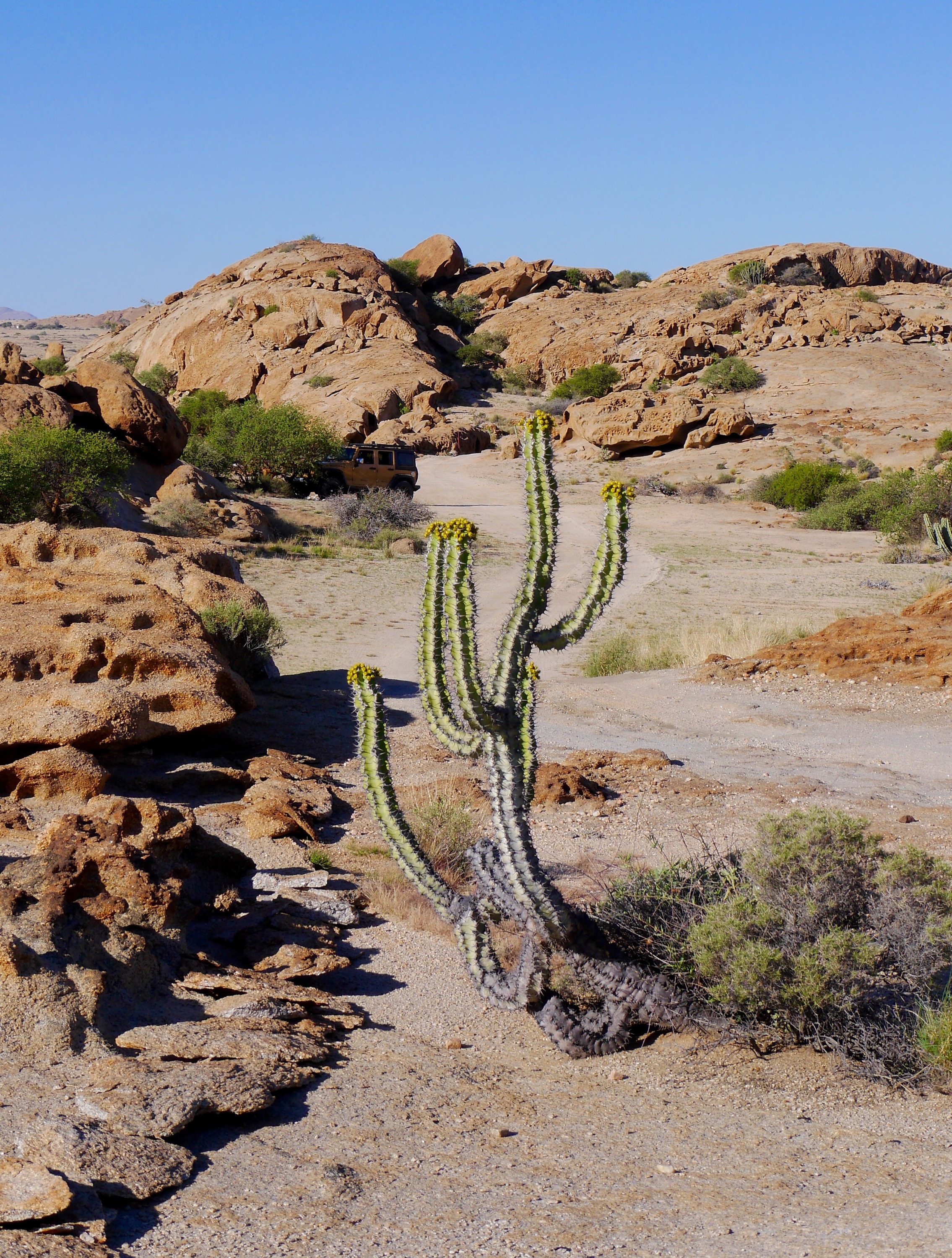 Bizarre Felsformationen, fantastische Ausblicke, Buschmannzeichnungen, 7 Quellen, eine einmalige Fauna und Flora mit Köcherbäumen und den äusserst seltenen Lithopsen (lebende Steine) machen Wüstenquell zu einem besonderen Erlebnis! Eingebettet in den Namib Naukluft Park ist Wüstenquell die nächste Gästefarm und Campsite an der Welwitschia Fläche; ein toller Stop-over auf dem Weg von oder nach Swakopmund (direkter Zugang zum Park). Ein echter Geheimtipp!