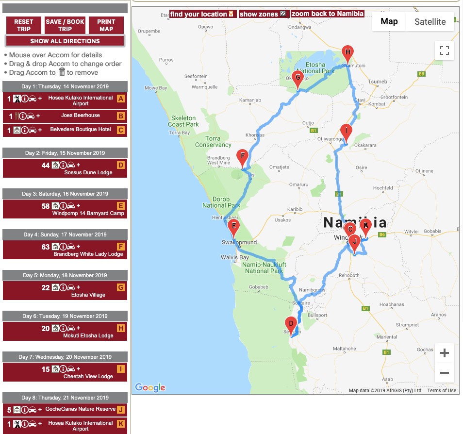 Plan your trip on our website, from day to day, including : Accommodation, (From Camping to Luxury Lodges and all in-between) Activities, Restaurants, Car Hire, Services and Shopping.